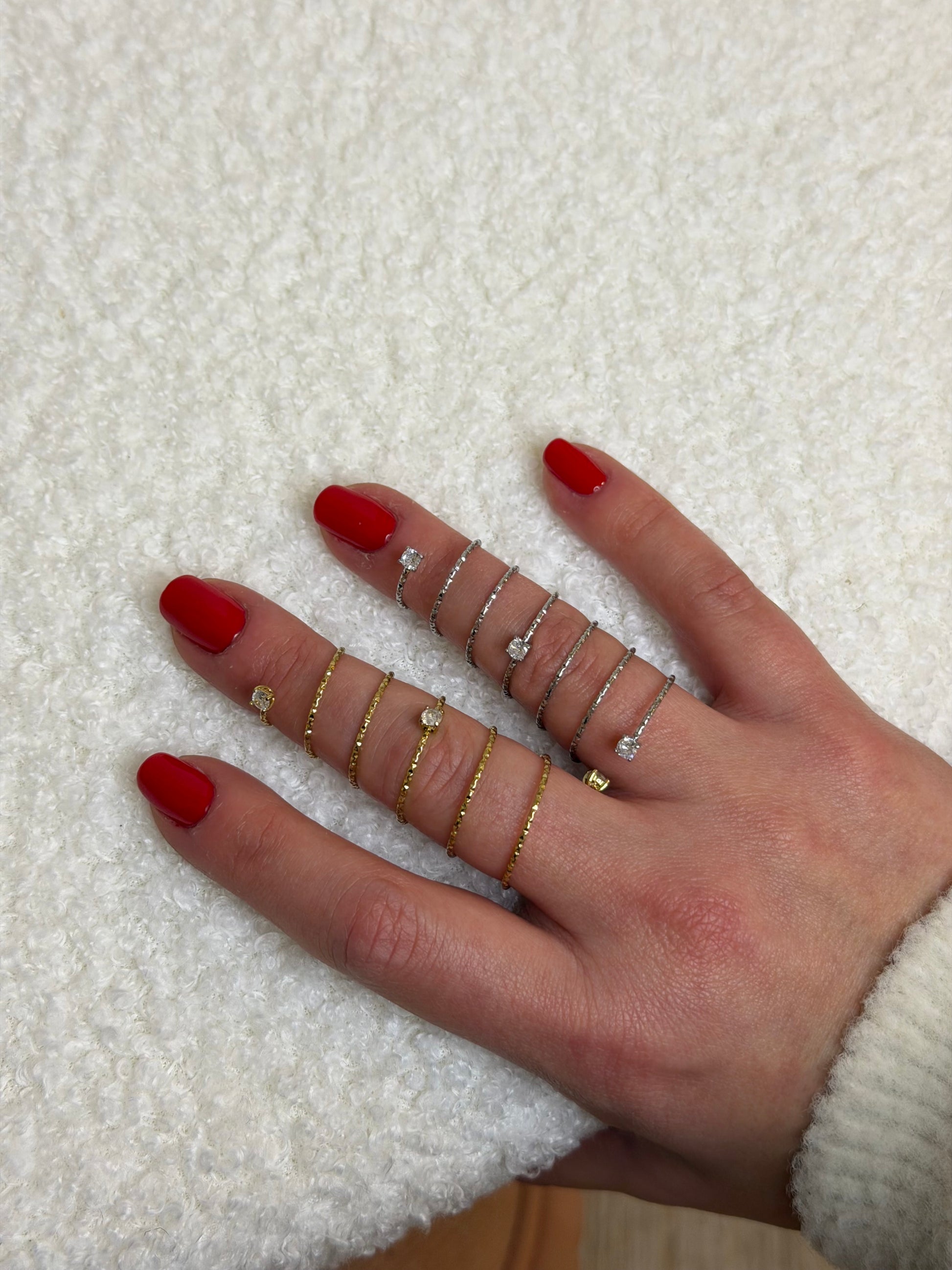 L’anello melody é realizzato in acciaio inossidabile 316L e zirconi. La misura è leggermente regolabile.