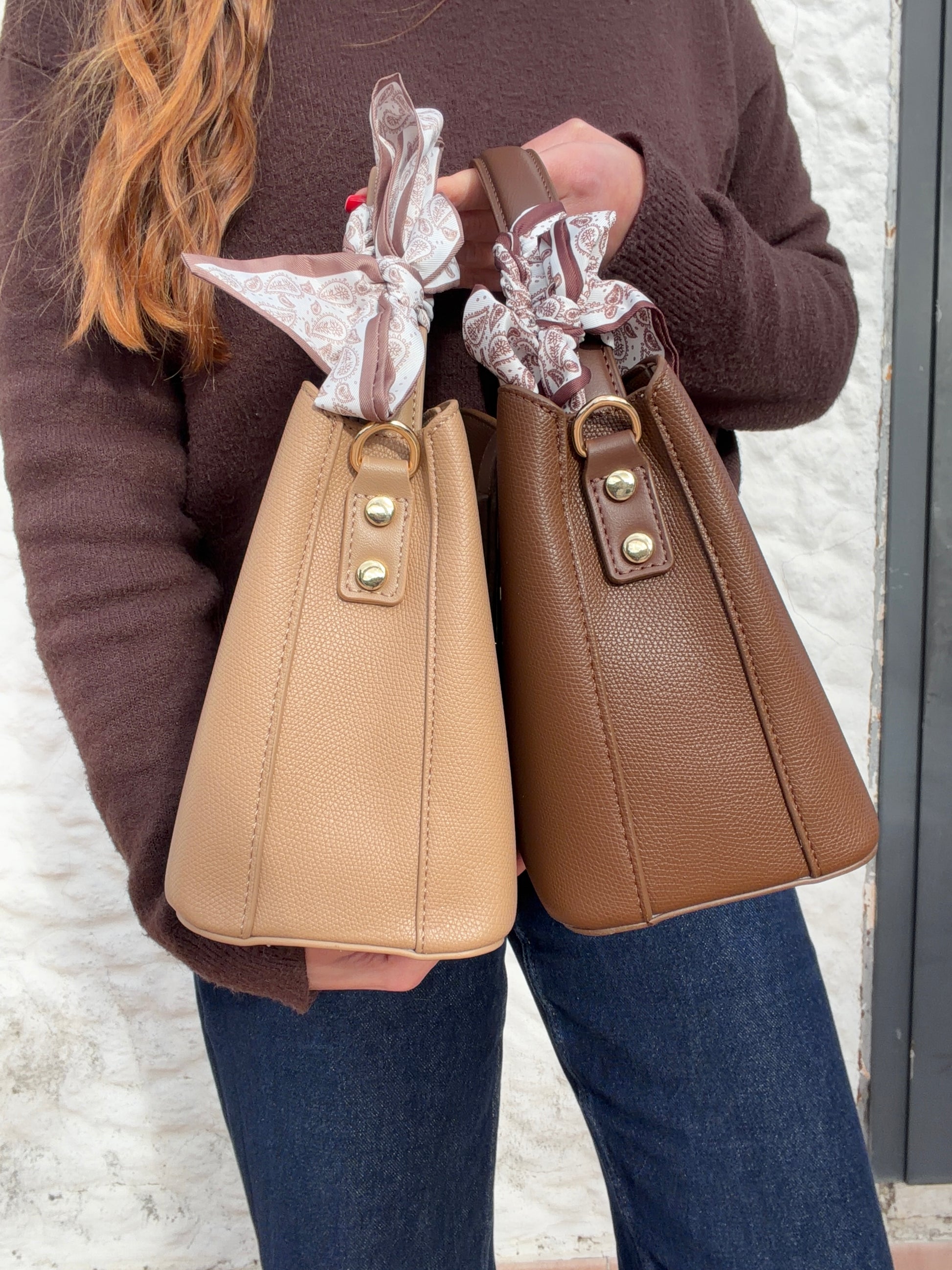La borsa Emma é realizzata in ecopelle, é munita di tracolla e le sue misure sono 21,5x18,5x11.