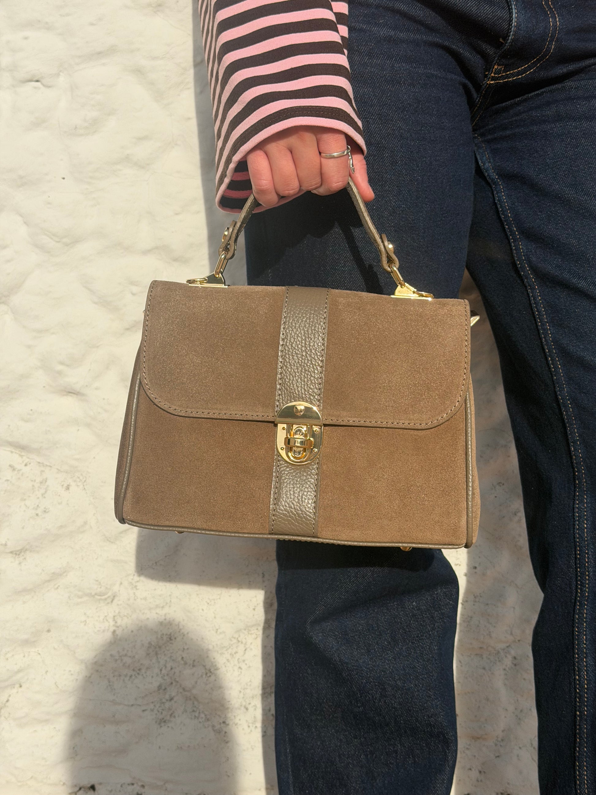 La borsa Vittoria è completamente Made in Italy ed è realizzata in vera pelle e camoscio.