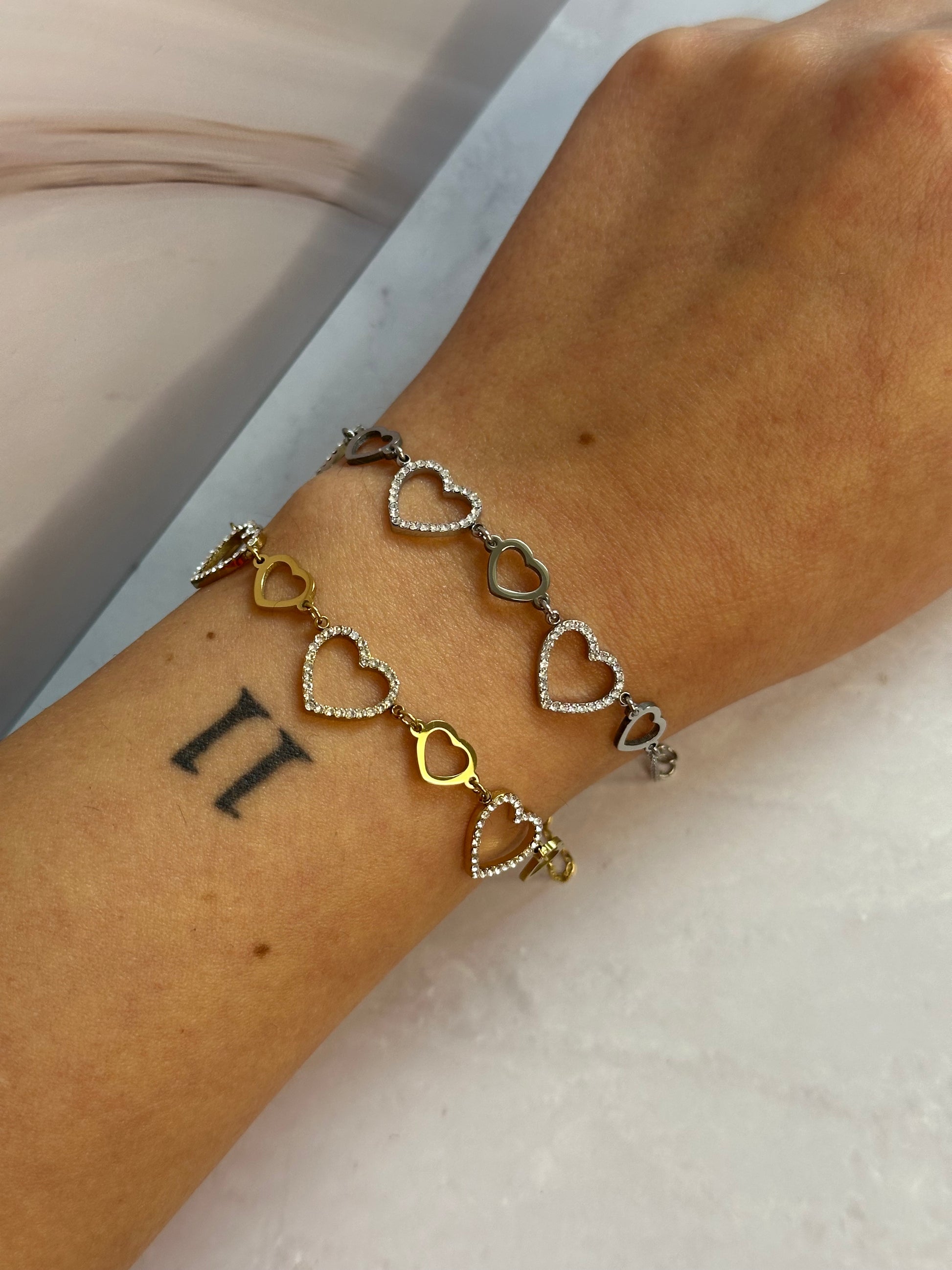 Il bracciale amour è realizzato in acciaio inossidabile 316L e strass.