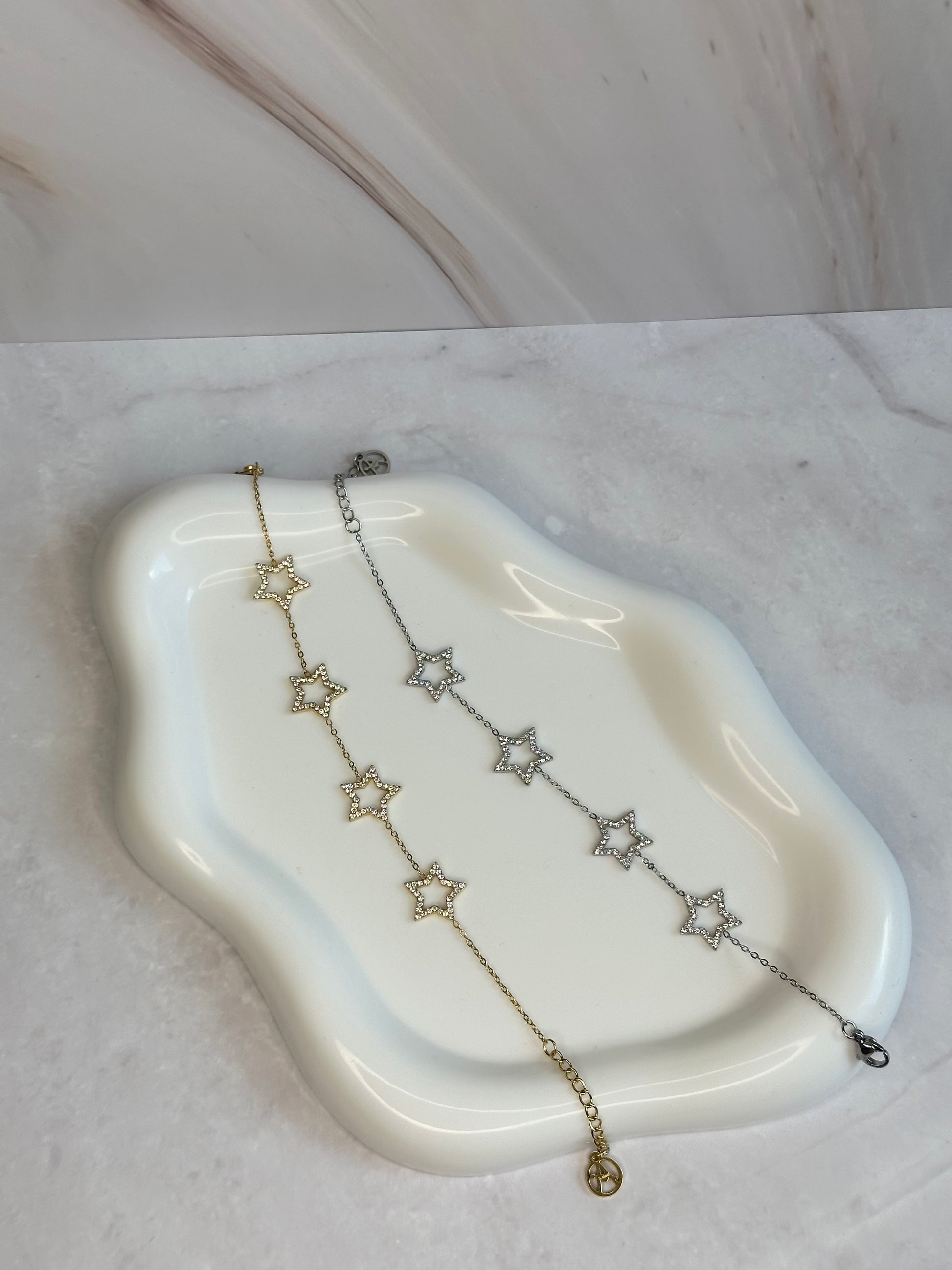 Il bracciale supernova è realizzato in acciaio inossidabile 316L e strass.
