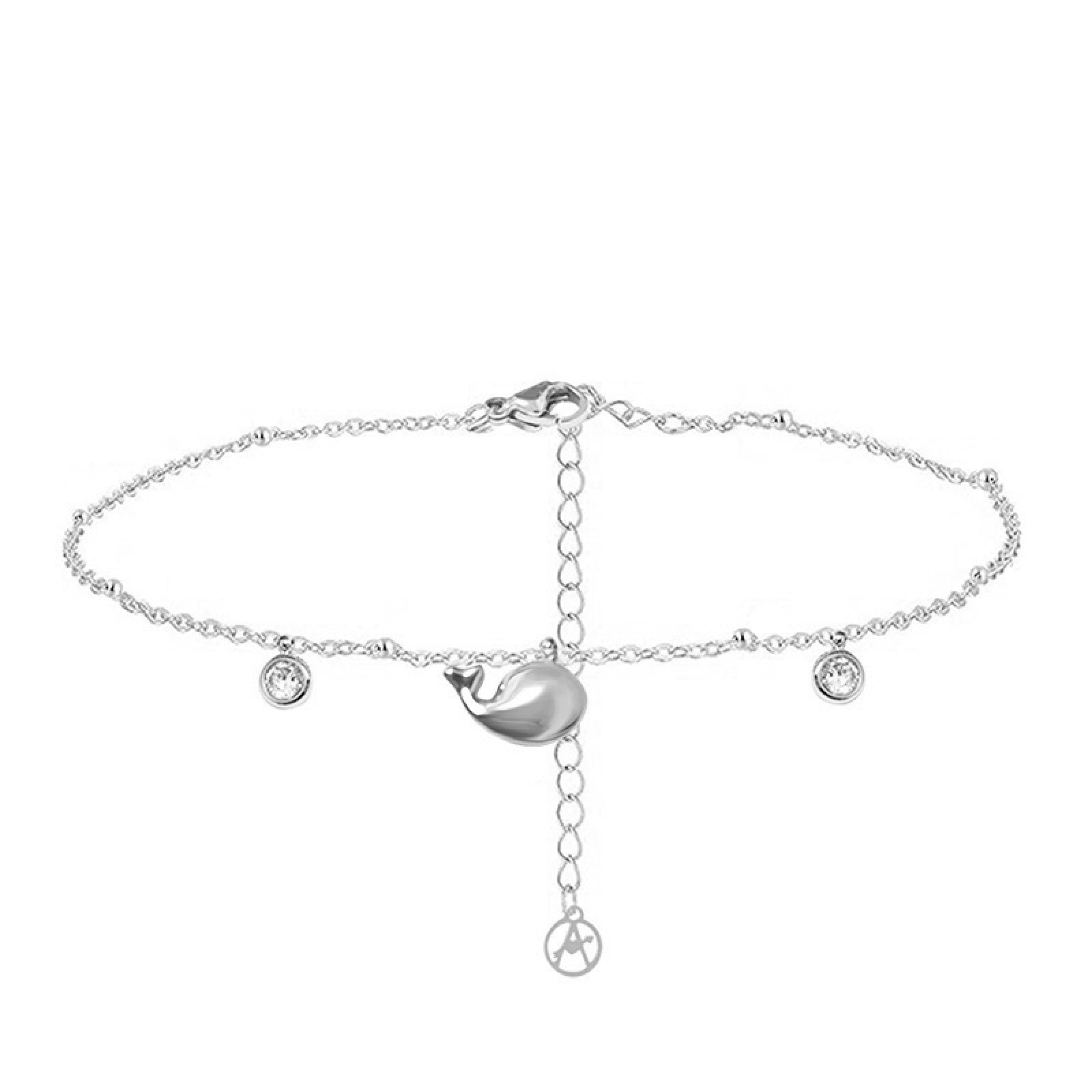La cavigliera balena è realizzata in acciaio inossidabile 316L e zirconi. Ha una lunghezza di 20cm + 3.5cm di allungamento.