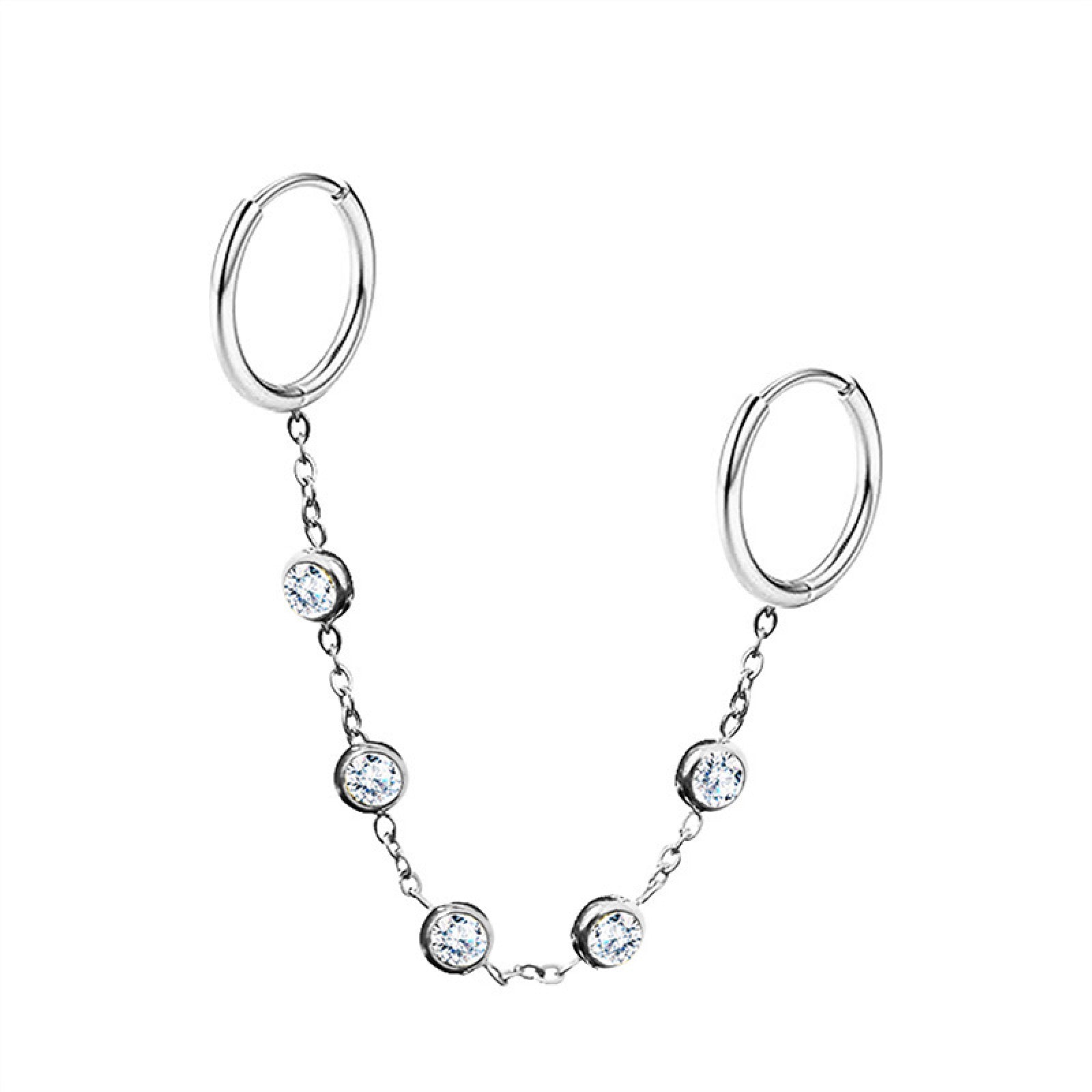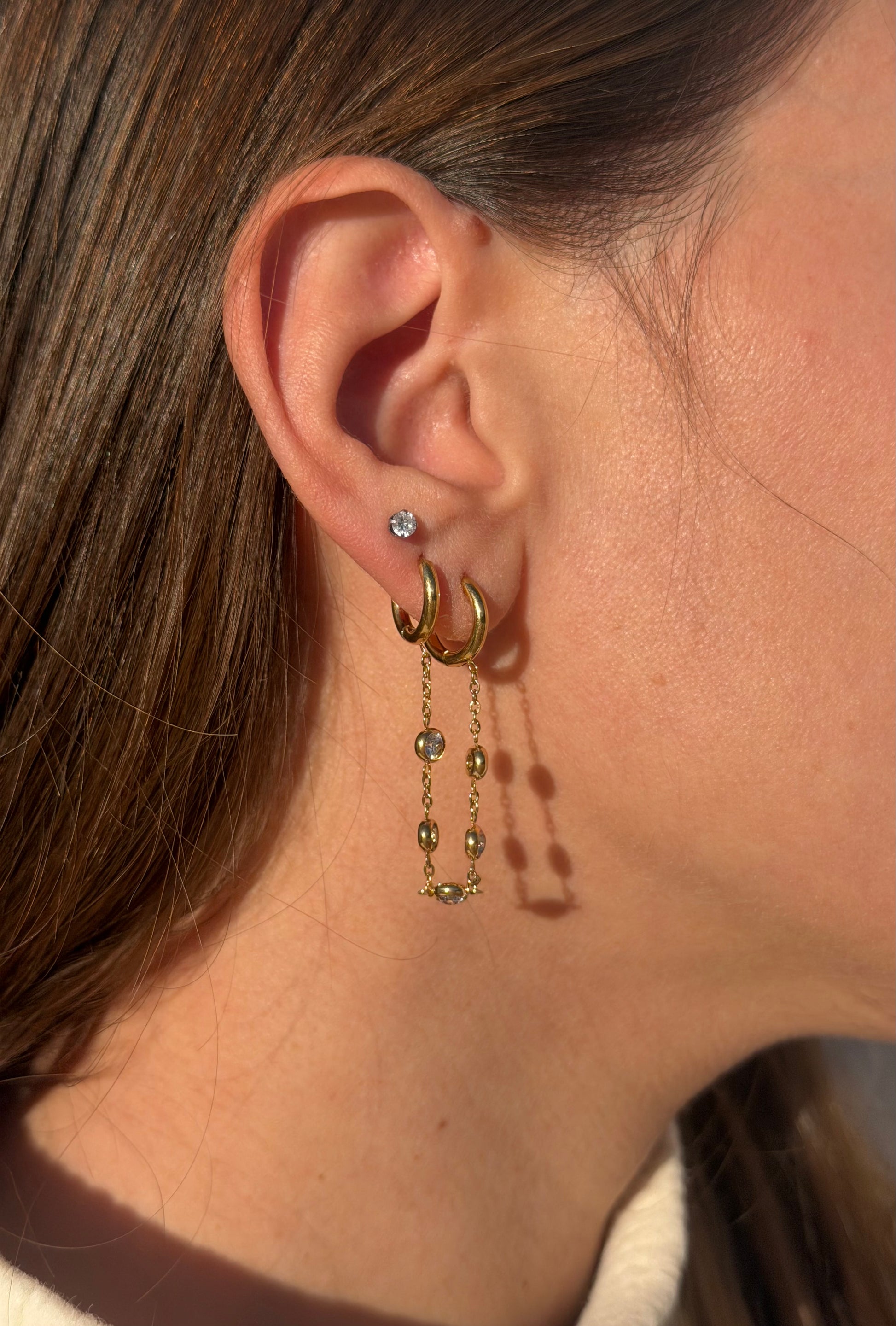 Il mono orecchino brilli é realizzato in acciaio inossidabile 316L e zirconi. Perfetto per occupare primo e secondo buco.