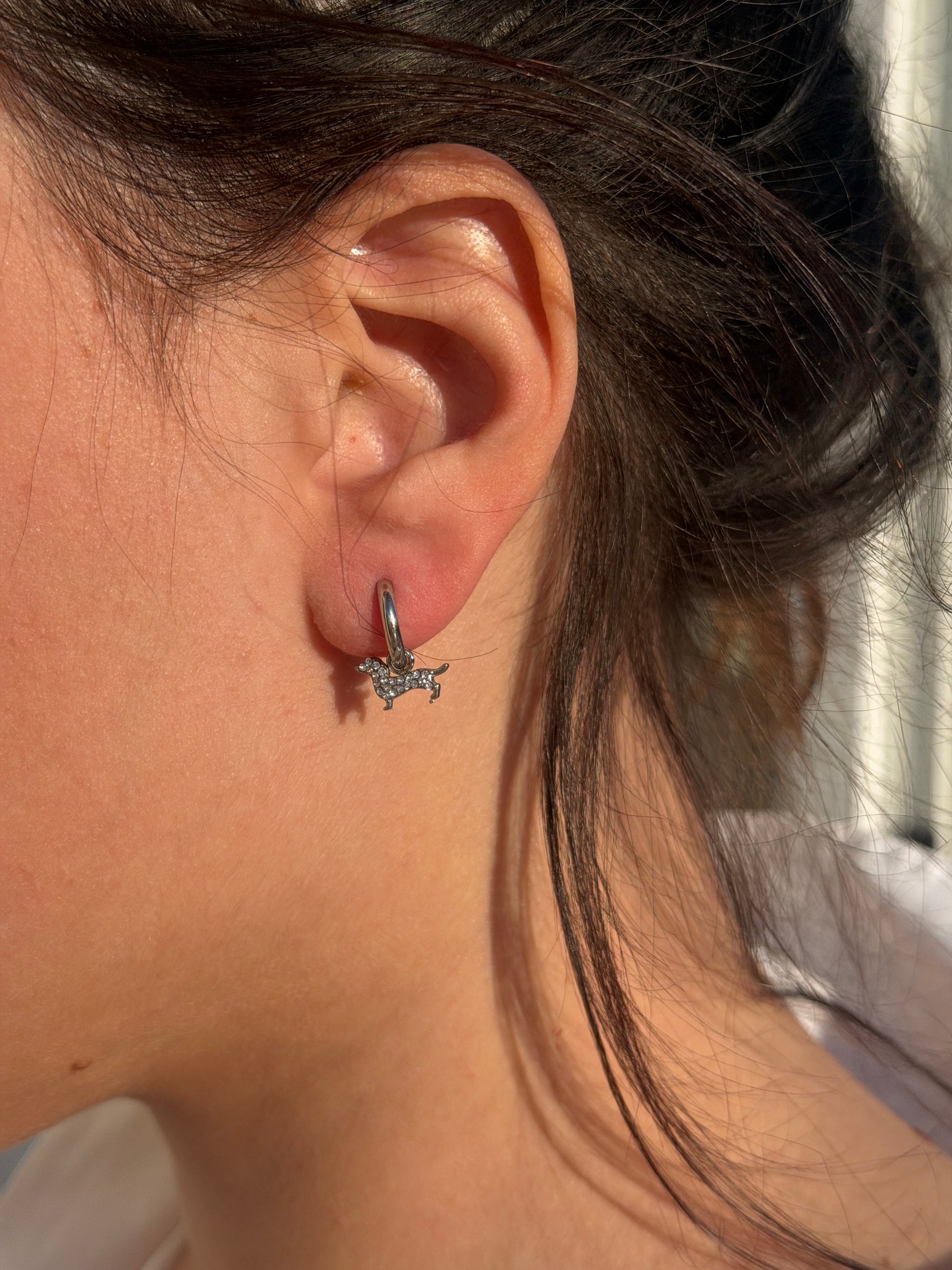 Gli orecchini bassotto sono realizzati in acciaio inossidabile 316L e strass.