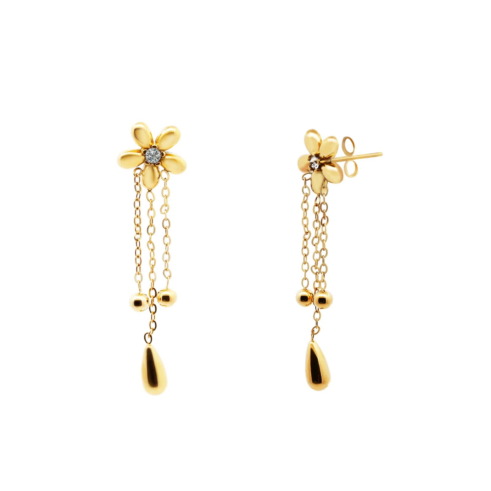 Gli orecchini Margherita sono realizzati in acciaio inossidabile 316L e zirconi.